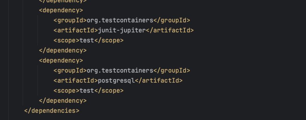 Each system’s DBs and Test containers were a great help with the testing. In order to add to the Boot APP, here is a simple POM entry that I had to add