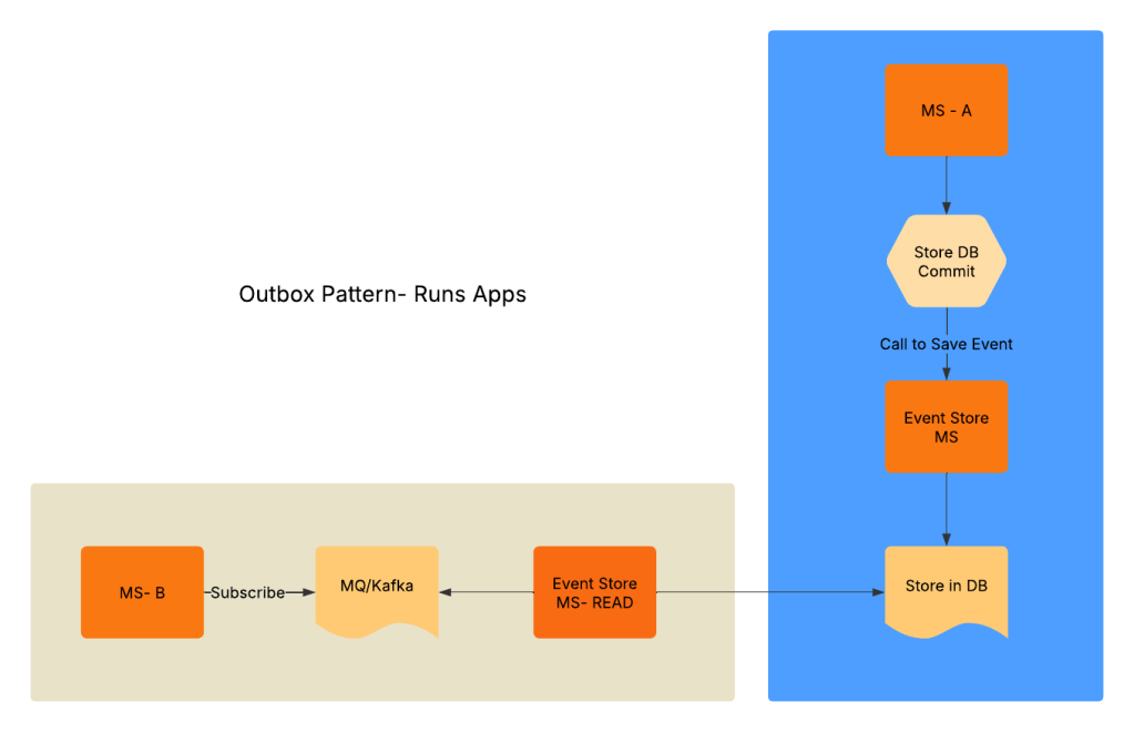 Now, create a separate transaction. This transaction will read the events that occurred due to the MS-A operation. It will drop them into the MQ/Kafka topic for the subscribers, in our case, MS-B.