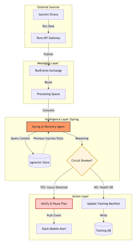 In my previous post on Scalable Queues, I talked about managing event-driven systems. I realized I needed a similar architecture for my health. I needed an AI Advisor that sits on top of my run-data queue. This advisor looks at my injury history to understand the context. It then decides if the ‘system’ needs a forced reboot, which means taking a rest.